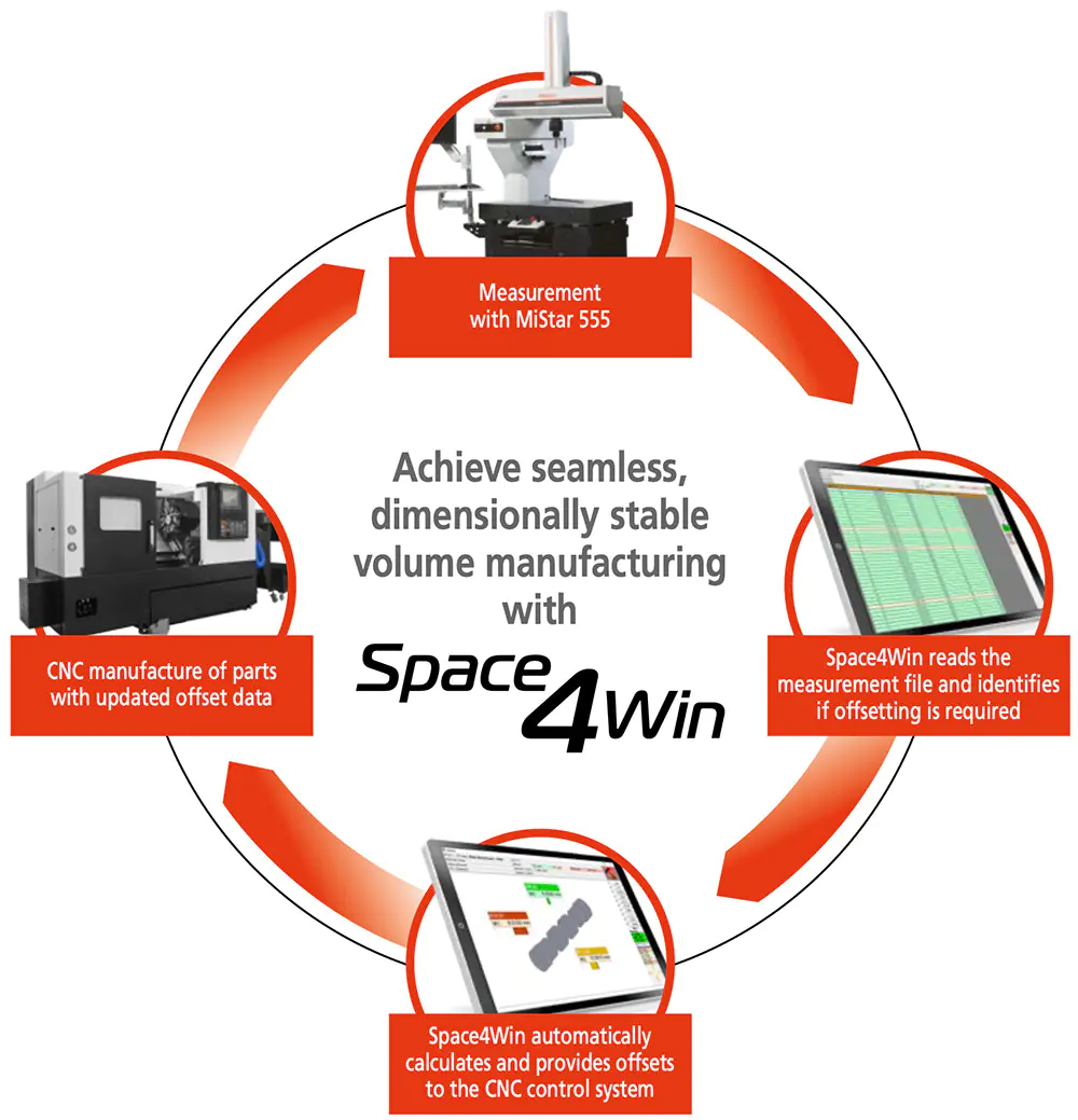 Space4Win takes the guesswork out of tool correction by calculating precise adjustments during the measurement process and seamlessly transmitting them to the CNC control. This ensures error-free tool offset control through advanced measurement data processing.